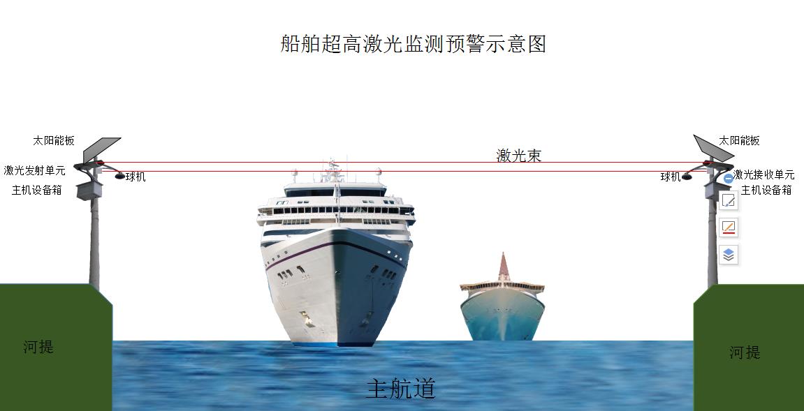 如果系統檢測到船舶超高,系統將作出以下預警: