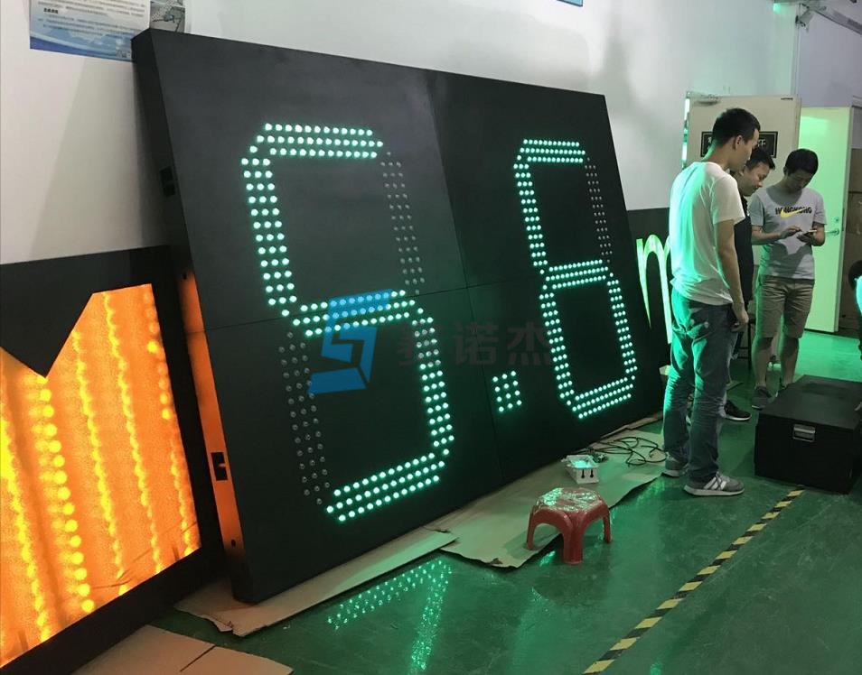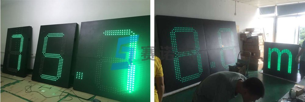 LED顯示屏是利用發光二極管構成點陣模塊組成的顯示產品,LED模組顯示已經非常成熟與節能,但考慮到項目本身成本預算與遠視距要求(1000m以上),結合我司鐵道信號燈的生產經驗,我們設計了小密度8字屏+二次光學透鏡的方案,實際測試可視距離超過1200米。