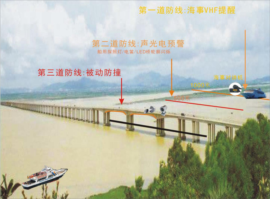 珠江是廣東省黃金水道,水系發達,航運繁忙,結合交通部航道信息化建設要求,為防止通航事故特別是船舶對橋梁碰撞安全事故發生,廣東省航道事務管理局組織相關技術力量,研發了橋梁防撞預警系統,經過6個月的建設,目前在珠江水系30座橋梁上安裝了該系統。經過國內權威專家組評估與審核,該系統由偏航檢測單元、超高檢測單元、水位檢測單元、聲光報警控制單元、LED實時顯示單元、系統平臺軟件六個單元組成。我司成功中標聲光報警控制單元、LED實時顯示單元子項目產品供應。