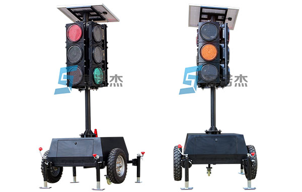 移動式太陽能交通信號燈采用太陽能供電,符合新工業環保理念。底箱采用移動式推車,360度靈活腳輪推行方便,省時省力,交通信號燈立桿使用法蘭盤與底箱牢固鎖緊。