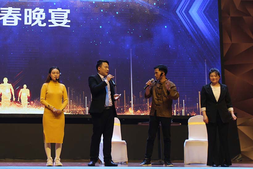 晚會首先用VCR視頻展示了公司過去一年的發展歷程,用全景式的鏡頭展示公司在辦公環境的提升、生產設備的更新、技術研發上的進步、國內新市場的開辟、海外市場的因時而變。這一年,“我們以團隊為大,靠專業為生,用心為客戶服務,讓奮斗者成長”,面對突如其來的新冠疫情,公司于2月10日順利復工。作為一個負責任的民營企業,公司對內承諾2020年我們共克時艱,不減員不降薪;并提前給大家發放元月份工資;承諾湖北等重點疫區不能返崗的員工,疫情期間薪資福利等待遇正常發放。公司不但兌現這些承兌,而且大家年終獎都要不同程度的增加。