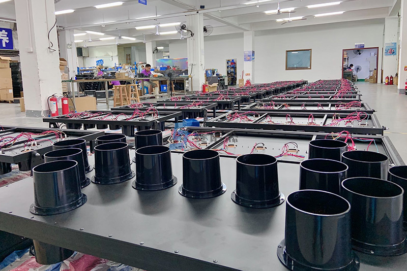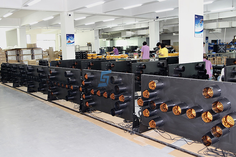 近日我司成品車間大批量組裝英國車載可變導向牌(帶電動升降功能),產品采用超高亮琥珀色發光LED,靜態可視距離500米,車速120碼的條件下可視距離400米,產品質保10年。