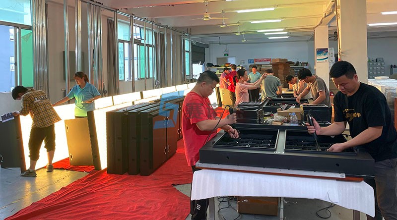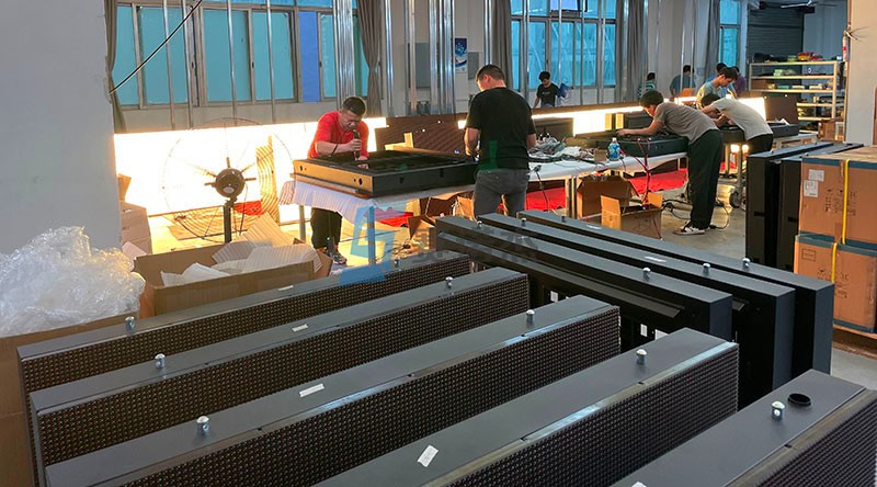 我司于4月10日收到泰州姜堰南繞城項目訂單,其中道路顯情報板屏P10直插三色全彩屏39套,P8貼片全彩屏8套。為滿足項目五一通車剪彩典禮,我司充分利用粵港澳大灣區電子產業供應鏈優勢與我司自動化柔性生產能力,僅僅只用12天就將產品交付。下面分享4月22日組裝車間的一些剪影。