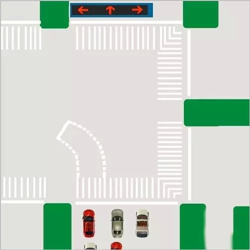 2、當直行信號燈綠燈亮時,左轉彎的機動車進入左彎待轉區等候放行信號