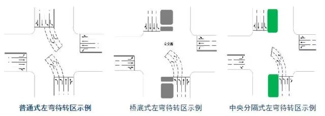 按交叉口的道路條件不同,可分別為普通式,橋底式和中央分隔式