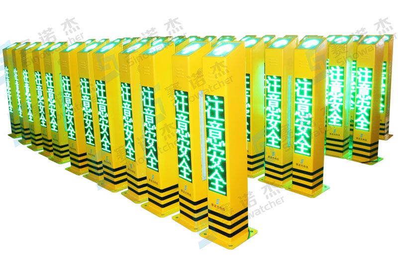 交通安全語音提示樁又名行人過街語音提示柱,語音提示樁,行人過街警示樁等。賽諾杰生產的交通安全語音提示樁集內容定制、紅外技術、音量時段自定義于一體,支持Android系統手機APP更改文字、音量與時段。