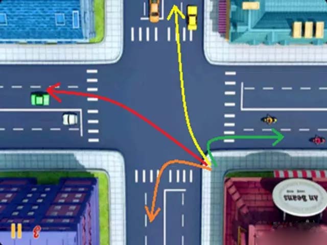 如果是一個四方向都是左轉與直行同時放行的路口,請參照下面的提示。