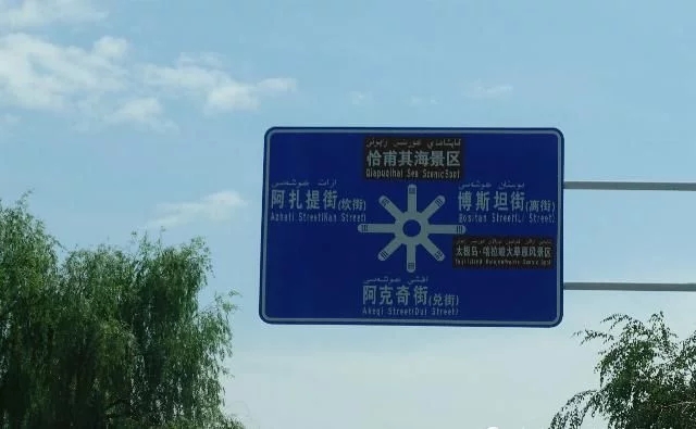 當然之前沒有交通信號燈不代表沒有交通指示牌,畢竟對于一個外地游客來說,交通指示牌是到達一座城市最官方的指路標志,只是在特克斯縣中心的指示牌并不能將八個方向的道路全部標記在同一塊兒牌上,只能告知大概的位置。