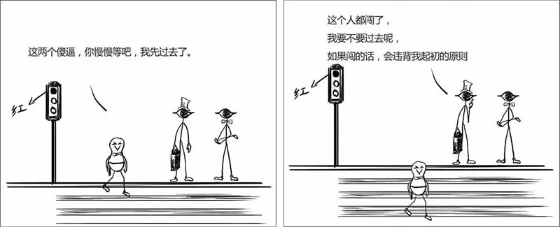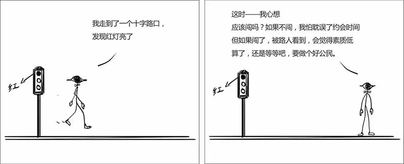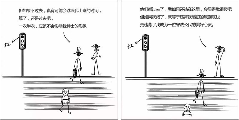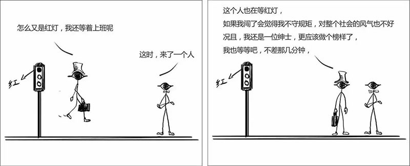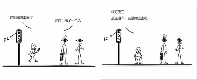 曾經看過一篇小短文,一位國外的老奶奶在等交通信號燈,旁邊的路人都是匆匆穿過斑馬線,因為沒有汽車來往。