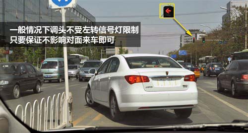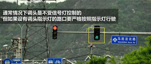 無論什么樣的路口,如果有專門的調頭指示燈,一律按照指示燈的指示行駛。