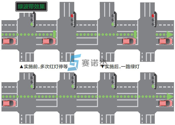 綠波帶的效果受路口幾何條件、路口間距、流量現狀、交通條件及通訊條件等因素的影響。舉個簡單的例子,如果某條道路設置有綠波帶,可能會吸引更多的車輛進入此道路,此時該道路的車流量將發生變化,而原有的綠波帶設置可能因此失效。