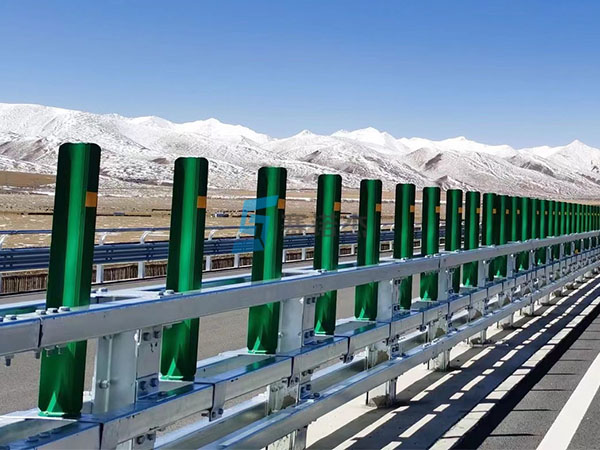 2、防眩板與波形梁護欄配合設置,可在分設型護欄立柱上加橫梁(槽鋼),防眩板固定在槽鋼上,也可在組合型護欄立柱上固定防眩板。通過連接件將其架設在護欄上,也可單獨豎立支柱將其埋設在中央分隔帶上。