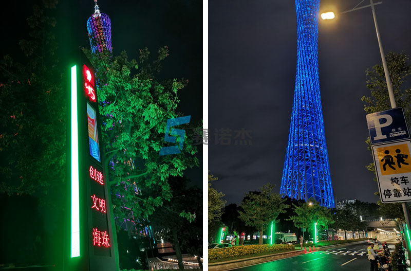我司承接了廣交會展館、琶洲館周邊路口的智慧斑馬線項目,為了更貼近廣交會的主題,行人過街警示一體機在外形上按照廣州市地標設計,融入了海珠濕地牌坊、獵德大橋、琶洲塔、琶洲會展中心這些地標建筑圖案。LCD屏顯示第130屆廣交會的宣傳圖案,以此助力本屆廣交會開幕。