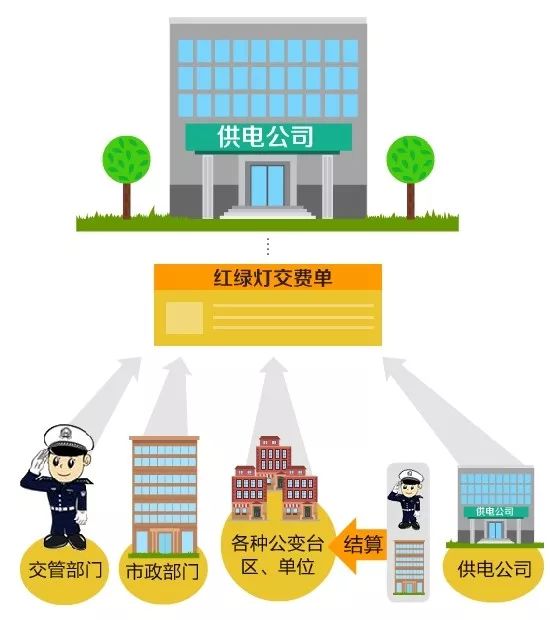 2、而接入其他地方的交通信號燈的電費,供電公司與接入地的負責單位結算,他們再與相關部門結算。