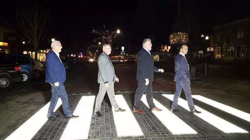 2017年1月,荷蘭一家名為Lighted Zebra Crossing B.V.的設計公司在該國東部小城Eerbeek的一個購物區街道上設計了一條會發光的斑馬線,以提醒路過的司機減慢車速。除了會“發光”,該斑馬線上還帶有傳感器,可以計算路過的車輛數、行人數、車輛載重和車速等數據。