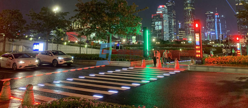 用于誘導車輛和行人定時通行的發光地磚,應能與道路交通信號控制機實時通訊,且用于誘導行人的發光地磚燈色應能與人行橫道信號燈相位同步、用于誘導車輛的發光地磚燈色應能與機動車信號燈相位同步。在同步功能出錯或故障的情況下,發光地磚應及時熄滅。