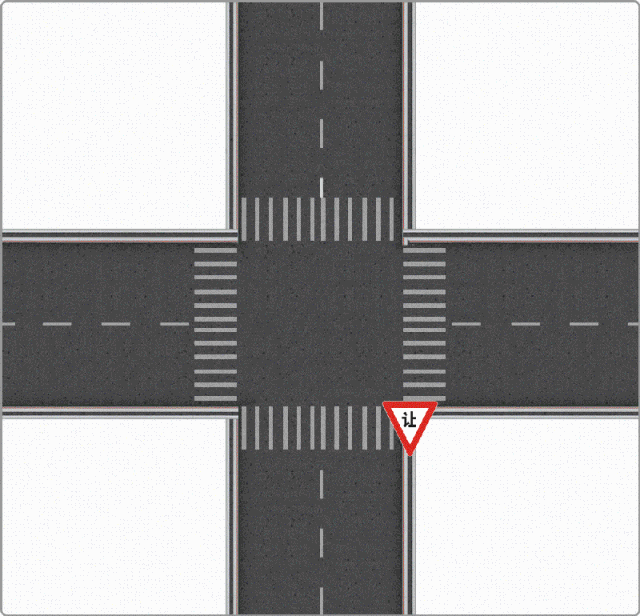 在沒有交通信號控制的十字路口,前進方向的右側車輛擁有優先路權,需要讓右側車輛優先行駛。