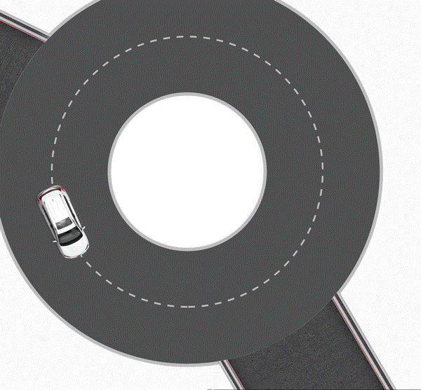 環形路口行駛原則 :準備進入環形路口的應讓已在路口內的車輛先行。進環形路口的車讓出環形路口的車;環形路口內側的車輛在出路口前,應提前變線至外側車道。