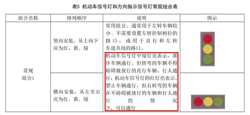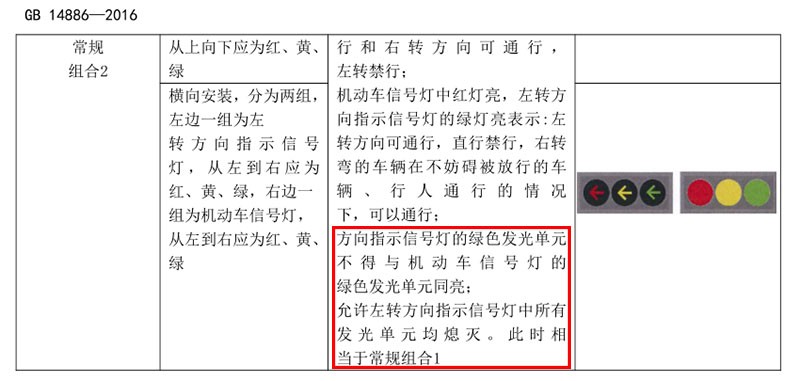 根據:中華人民共和國國家標準《GB14886-2016道路交通信號燈設置與安裝規范》“6.1.2方向指示信號燈的綠色發光單元不得與機動車信號燈的綠色發光單元同亮;允許左轉方向指示信號燈中所有發光單元均熄滅。此時相當于常規組合1”, 常規組合1即為混合放行模式。