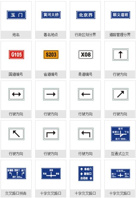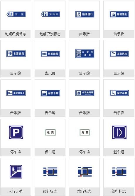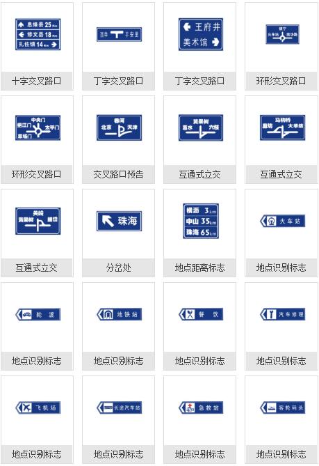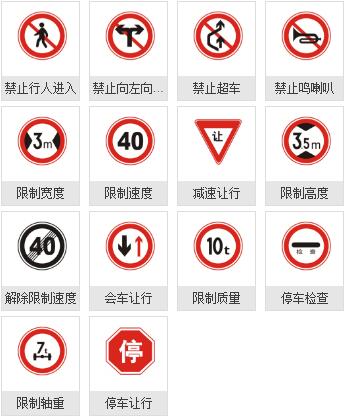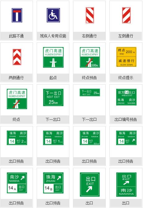 道路交通標志:警告標志,禁令標志,指示標志,指路標志,旅游區標志,其他標志