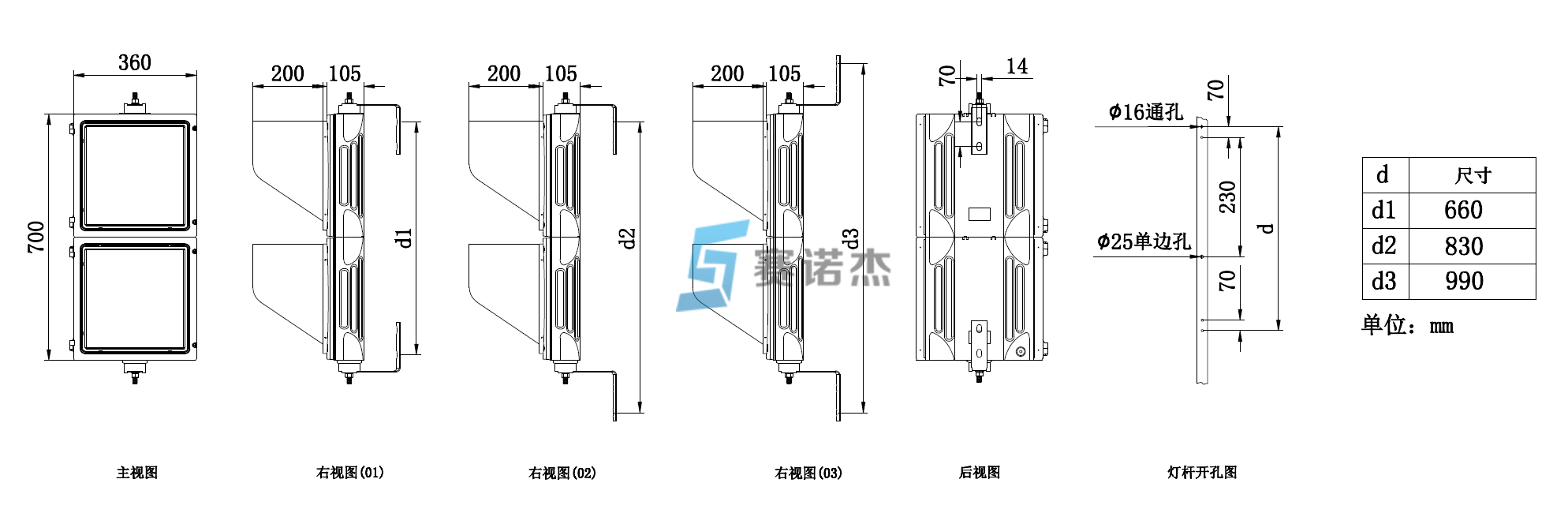 | 安裝支架 | 又稱:L型支架,每套標配,安裝于信號燈頂部與底部,連接信號燈與燈桿,放置于包裝箱泡沫頂部 |