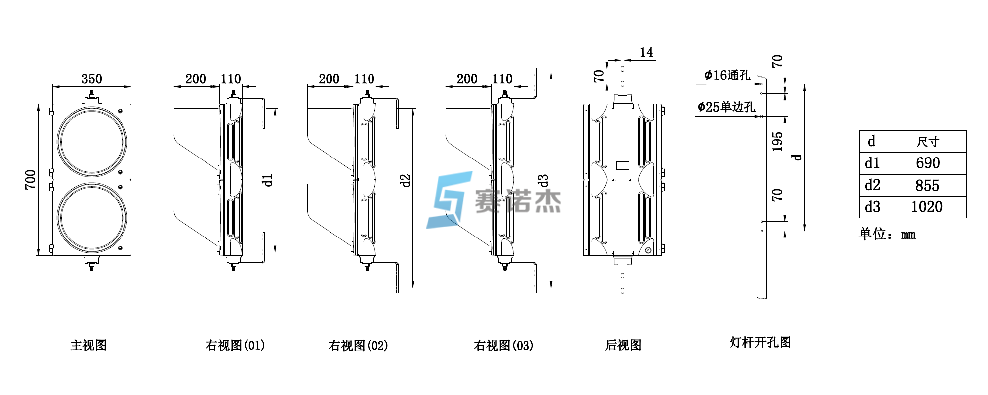 | SW300-LZSZ-89 | 300mm信號燈立柱豎裝配件,兩對抱環方式套件,89--立柱桿件直徑89mm |