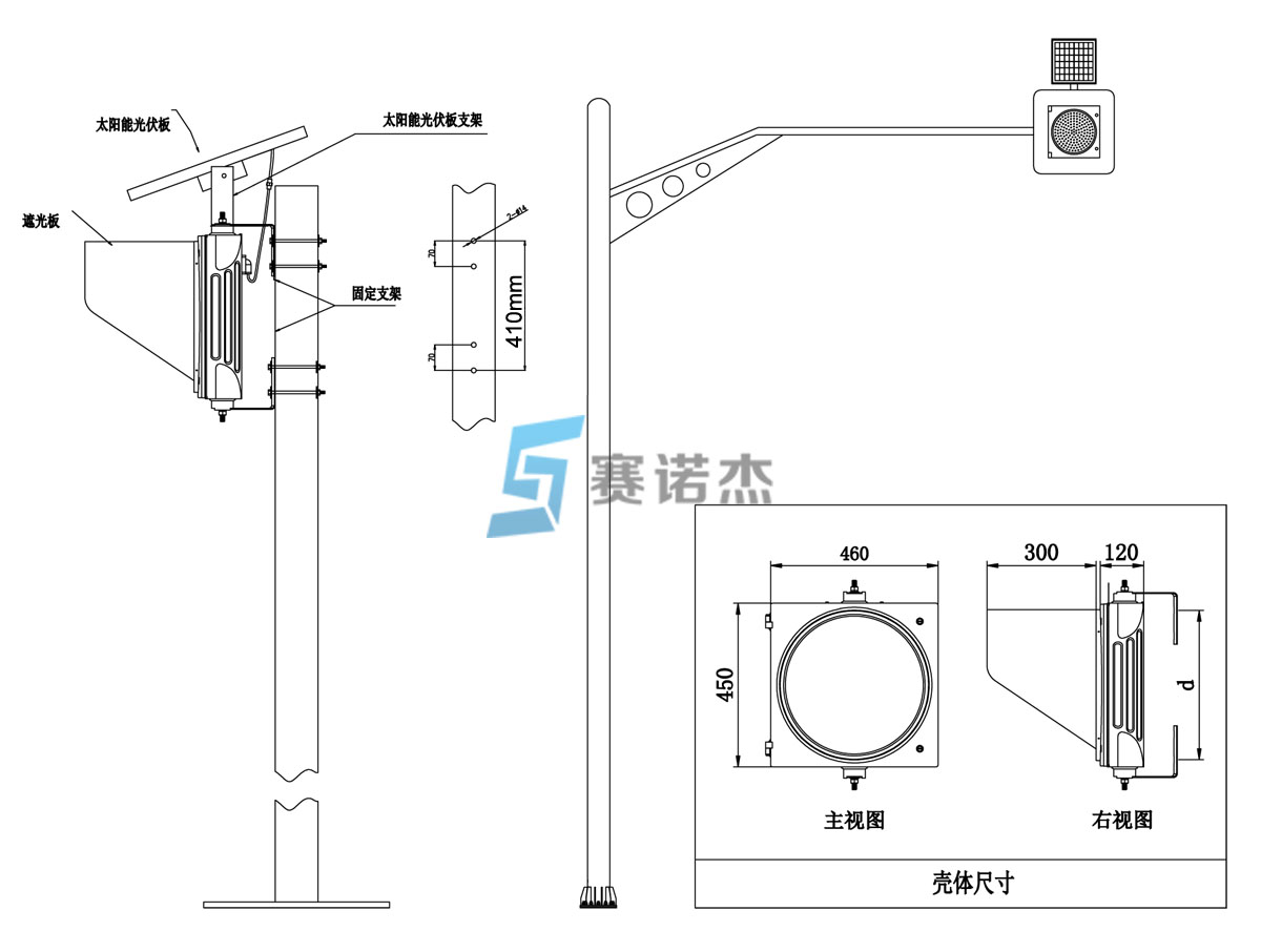 | SSG400-3-SW-1HA(L) | 400mm太陽能黃閃信號燈,壓鑄鋁外殼,含標配配件 |