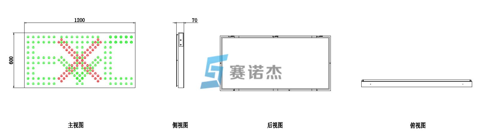 | SW-ETC-1200-II-B2(XS-CL) | 1200×600mmETC控制標志,LED像素筒式,4紅/3綠像素筒,單面發光,紅色“X”,綠色“↓”,綠色“ETC”,含標配配件 |