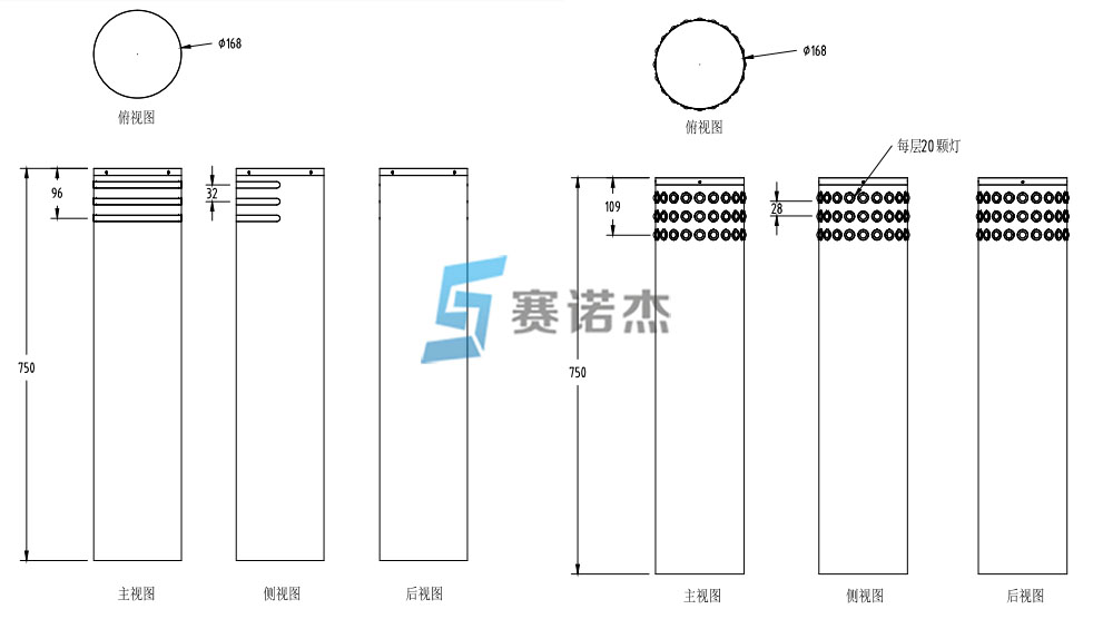 ★行人過街警示柱的控制盒常規配置為60W,可供8-10根警示柱使用;